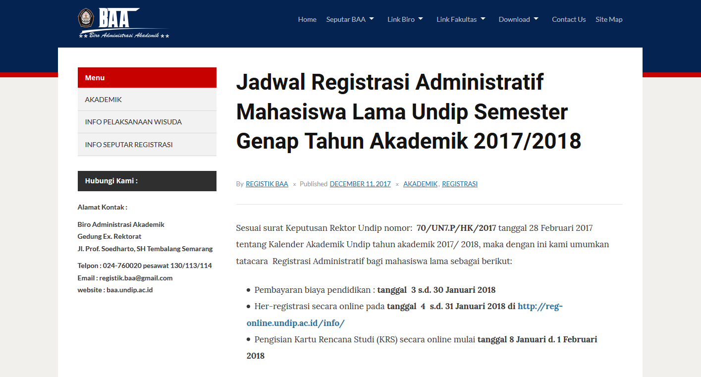 - Her-registrasi secara online pada tanggal 4 s.d. 31 Januari 2018 di http://reg-online.undip.ac.id/info/