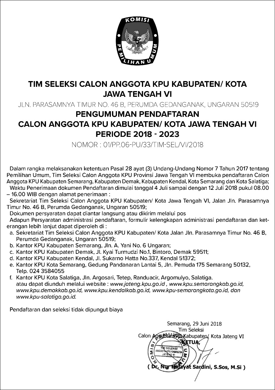 Pengumuman Pendaftaran Calon Anggota KPU Kabupaten / Kota Jateng 6