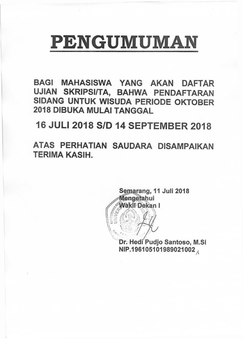 Jadwal Pendaftaran Sidang untuk Wisuda Periode Oktober 2018