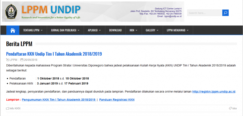 Pendaftaran KKN Undip Tim I Tahun Akademik 2018/2019