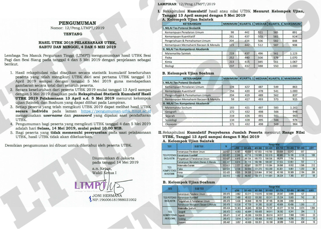 Hasil UTBK 2019 Sabtu dan Minggu, 4 dan 5 Mei 2019