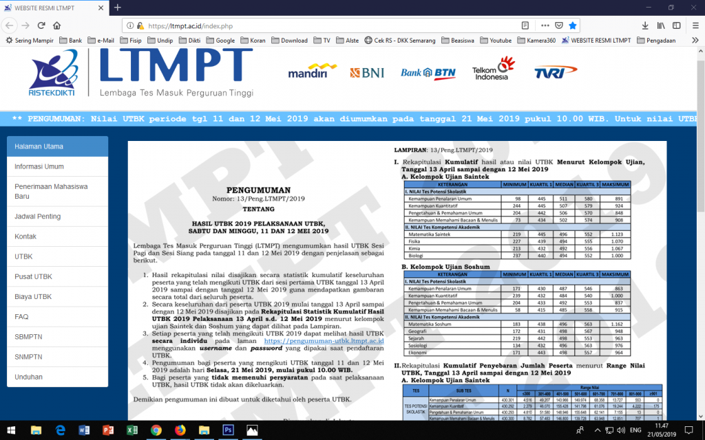 Hasil UTBK 2019 Sabtu dan Minggu, 11 dan 12 Mei 2019