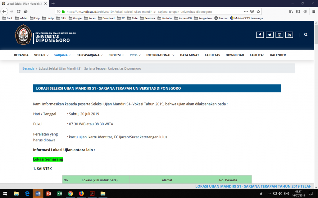 Lokasi Seleksi Ujian Mandiri S1 – Sarjana Terapan Universitas Diponegoro_Sabtu, 20 Juli 2019