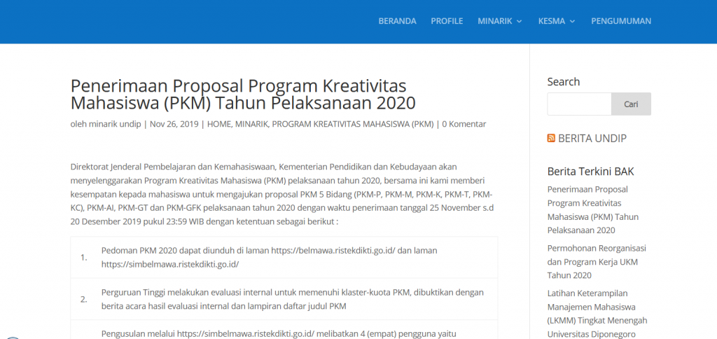 Penerimaan Proposal Program Kreativitas Mahasiswa (PKM) Tahun Pelaksanaan 2020