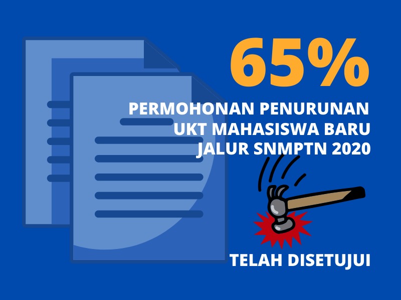 Dalam masa pendemi Covid 19 saat ini,Universitas Diponegoro terus peduli dan membantu masyarakat terutama calon mahasiswa baru untuk memiliki kesempatan kuliah di Undip. Terhitung 65% Permohonan Penurunan UKT Mahasiswa Baru Jalur SNMPTN 2020 telah disetujui. Permohonan penurunan UKT mahasiswa jalur SNMPTN 2020 tersebut disetujui oleh Undip melalui proses banding yang dilakukan di semua fakultas.
