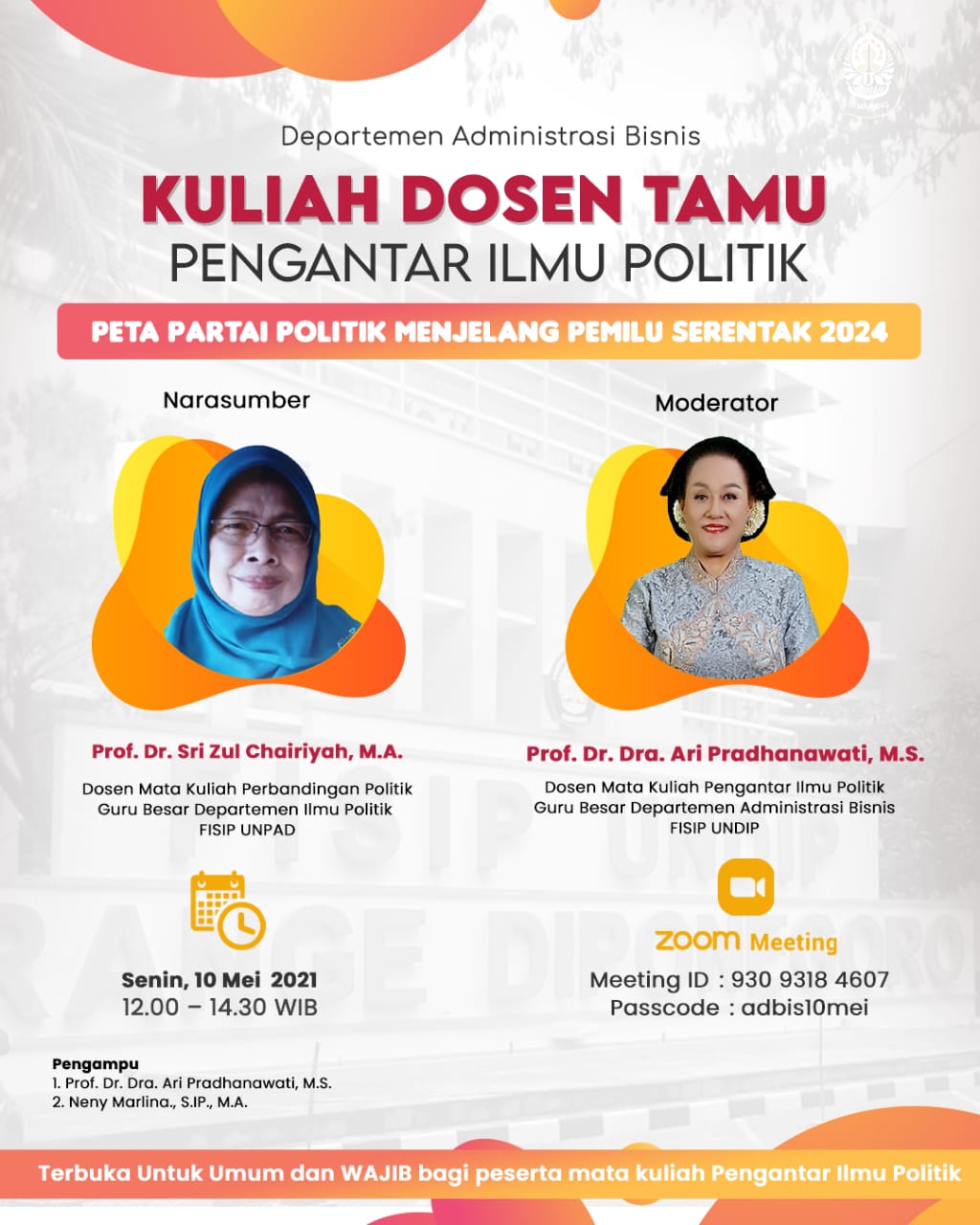 Kuliah Dosen Tamu Pengantar Ilmu Politik Administrasi Bisnis : Peta Partai Politik Menjelang Pemilu Serentak 2024