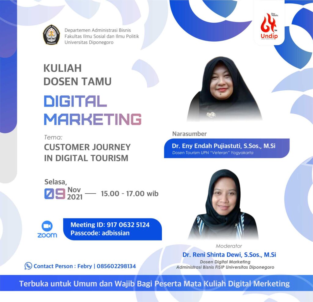 Kuliah Dosen Tamu Digital Marketing Administrasi Bisnis : Customer Journey In Digital Tourism