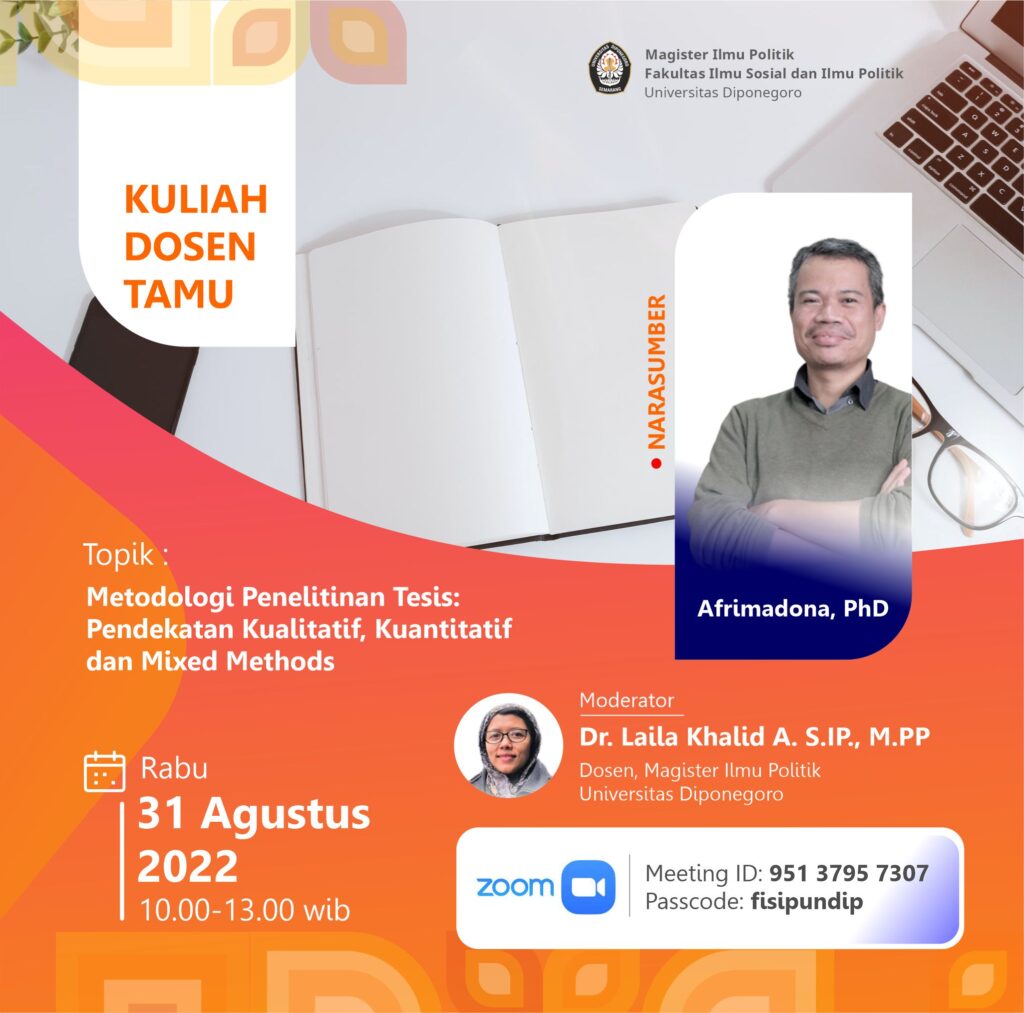 Kuliah Dosen Tamu – Magister Ilmu Politik, Metodologi Penelitian Tesis: Pendekatan Kualitatif, Kuantitatif dan Mixed Methods