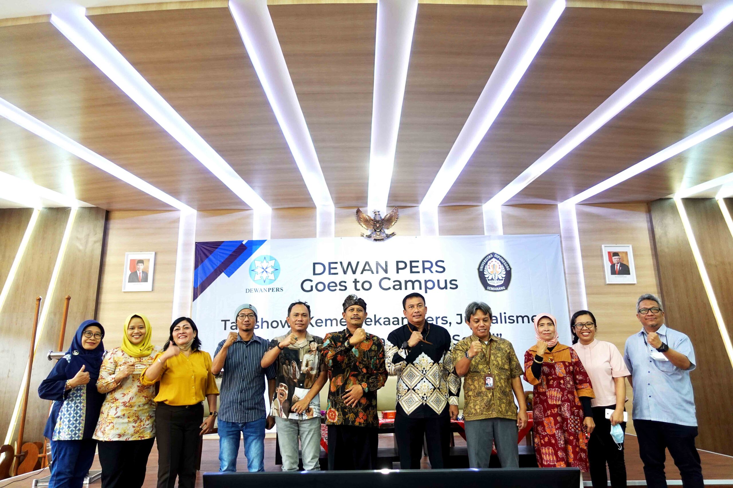 Semarang (5/10) – Fakultas Ilmu Sosial dan Ilmu Politik Universitas Diponegoro bersama dengan Dewan Pers telah menyelenggarakan Talkshow ‘Dewan Pers Goes to Campus” yang mengangkat tema “Kemerdekaan Pers, Jurnalisme Warga dan Peran Media Sosial.” Kegiatan yang berlangsung sejak pukul 09.00 WIB tersebut dilaksanakan di ruang Auditorium lantai 3 gedung A FISIP Undip Tembalang pada hari Rabu, 5 Oktober 2022. Acara yang diikuti oleh mahasiswa FISIP Undip tersebut juga dihadiri oleh Wakil Dekan Bidang Akademik dan Kemahasiswaan, Dr Teguh Yuwono, M.Pol. Admin., Wakil Dekan Bidang Sumberdaya, Ika Riswanti Putranti, S.H., M.H., Ph.D., serta segenap Ketua Departemen dan Ketua Program Studi di lingkungan FISIP Undip. Kegiatan yang dimoderatori oleh Asmono Wikan (Anggota Dewan Pers) tersebut menghadirkan beberapa narasumber seperti M. Agung Dharmajaya (Wakil Ketua Dewan Pers), Dr Nurul Hasfi, MA (Kadep Ilmu Komunikasi FISIP Undip), Aris Mulyawan (Ketua AJI Kota Semarang), dan Shafigh Pahlevi L (Pemerhati Media Sosial).