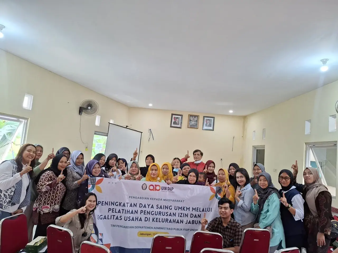 Semarang, 23 Mei 2025 – Departemen Administrasi Publik Fakultas Ilmu Sosial dan Ilmu Politik Universitas Diponegoro (FISIP UNDIP) kembali menegaskan komitmennya dalam pemberdayaan masyarakat melalui kegiatan pengabdian masyarakat mandiri bertajuk “Peningkatan Daya Saing UMKM Melalui Pelatihan Pengurusan Izin dan Legalitas Usaha di Kelurahan Jabungan.”