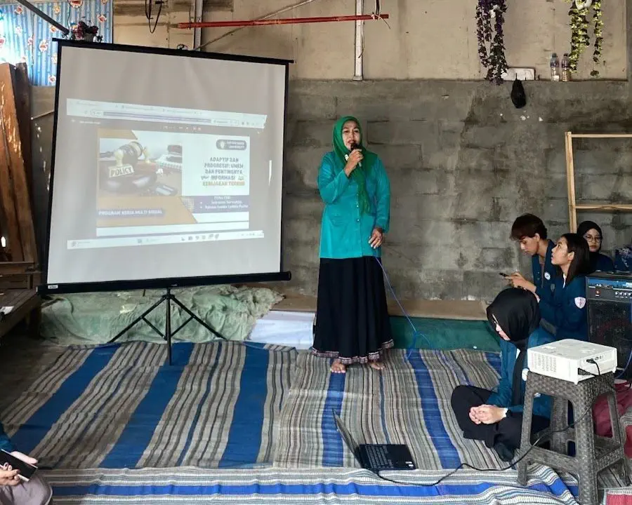 Program ini berfokus pada pemberdayaan sosial pelaku UMKM melalui edukasi komunitas, diskusi kelompok, serta pencanangan forum komunikasi UMKM antar-RW. Mahasiswa menyampaikan materi mengenai pentingnya kerja sama komunitas, penguatan solidaritas sosial, serta membagikan booklet berisi panduan kolaborasi dan jejaring usaha. Selain edukasi sosial, kegiatan ini juga menghasilkan komitmen awal terbentuknya forum UMKM RW 05 dan RW 06 sebagai ruang komunikasi bersama. Forum ini diharapkan dapat menjadi wadah kolaboratif bagi pelaku UMKM dalam berbagi informasi, peluang usaha, serta kerja sama produksi.