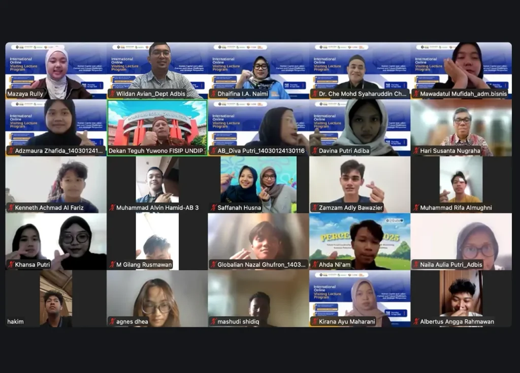 Departemen Administrasi Bisnis, Fakultas Ilmu Sosial dan Ilmu Politik, Universitas Diponegoro (FISIP UNDIP), berhasil menyelenggarakan Program Kuliah Tamu Daring Internasional pada Kamis, 18 September 2025 melalui platform Zoom. Program ini mengusung tema “Sumber Daya Manusia dan Tenaga Kerja: Tantangan Saat Ini dan Masa Depan, serta Respons Strategis”, yang mencerminkan komitmen fakultas dalam mendorong wacana akademik […]