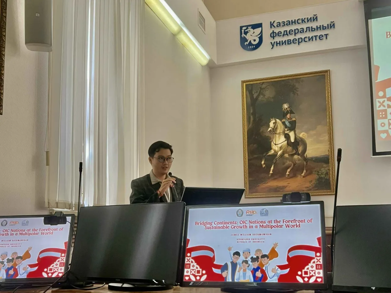 KAZAN (Rusia) – Prestasi membanggakan kembali ditorehkan Universitas Diponegoro. James William Kusumawikan, mahasiswa Program Studi Hubungan Internasional FISIP Undip, berhasil lolos sebagai delegasi resmi dalam III OIC Youth Scientific Congress 2025, setelah melewati seleksi super ketat yang diikuti lebih dari 1.500 peneliti muda dari seluruh dunia.