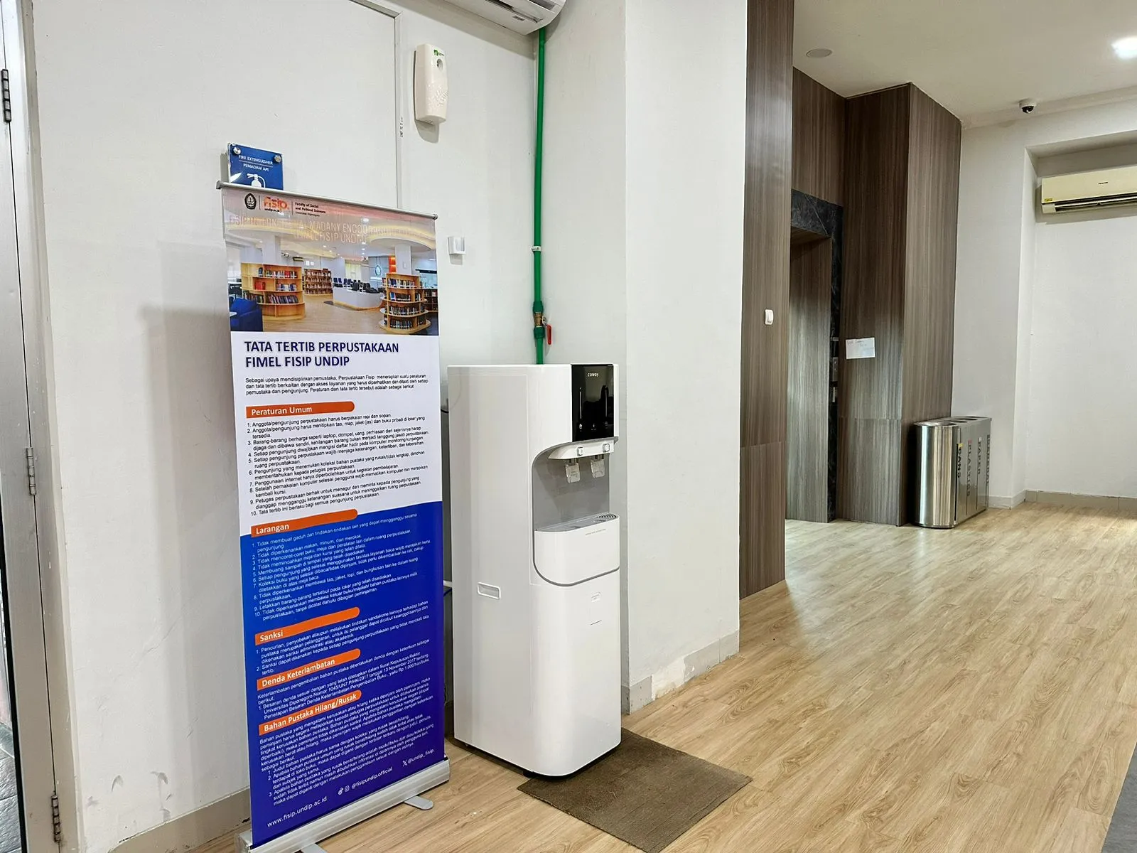 Sebagai bagian dari program peningkatan fasilitas pendukung, pada hari ini telah dilakukan pemasangan lima unit mesin pemurni air minum di beberapa titik strategis di FISIP UNDIP. Adapun pemasangan dilakukan di Gedung D sebanyak tiga unit serta dua unit lainnya di area Gedung B–C, sehingga dapat diakses oleh sivitas akademika di berbagai area perkuliahan.