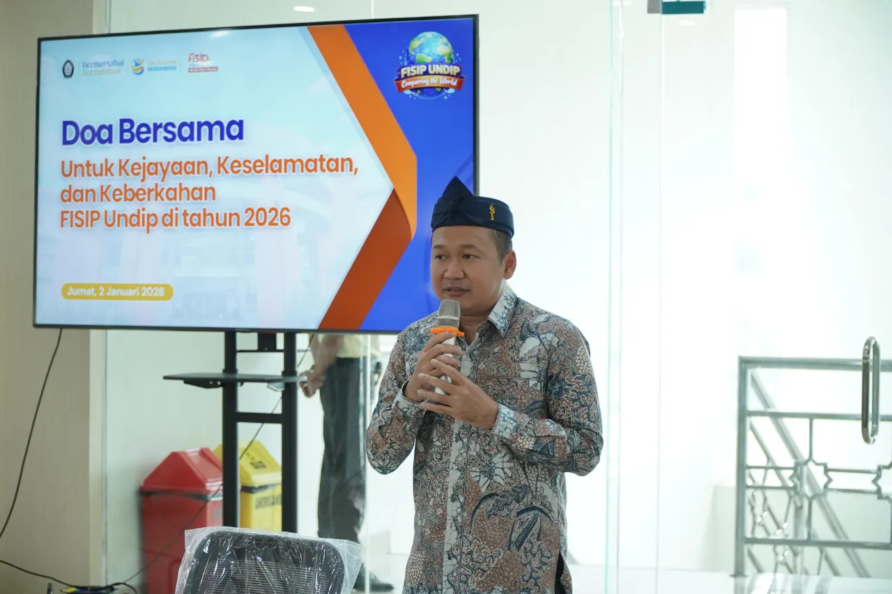 SEMARANG (02/01) – Memasuki lembaran baru tahun 2026, Fakultas Ilmu Sosial dan Ilmu Politik (FISIP) Universitas Diponegoro (Undip) mengawali langkah dengan menggelar acara Doa Bersama untuk Kejayaan, Keselamatan, dan Keberkahan FISIP Undip. Kegiatan yang berlangsung khidmat pada Jumat, 2 Januari 2026 di Perpustakaan FIMEL Gedung D Lantai 3 Kampus FISIP Undip, Tembalang ini, dihadiri oleh seluruh civitas akademika sebagai bentuk refleksi, syukur, dan penyatuan tekad untuk meraih prestasi yang lebih gemilang.