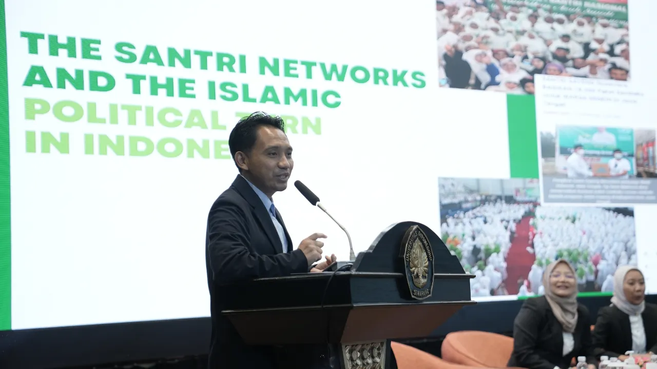 Dr. Phil. Wahid Abdulrahman, S.IP., M.Si., dosen departemen ilmu politik dan pemerintahan FISIP UNDIP, lulusan Goethe University Frankfurt, Jerman, membuka sesi dengan orasi ilmiah berjudul “The Santri Networks and the Islamic Political Turn in Indonesia.” Orasi ini menyoroti jejaring santri sebagai modal sosial-politik yang berkontribusi pada penguatan demokrasi, moderasi beragama, serta tata kelola politik yang lebih inklusif.