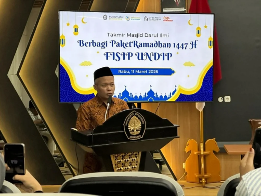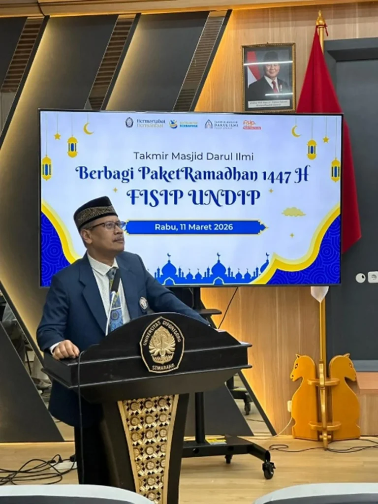Semarang (12/03) – Fakultas Ilmu Sosial dan Ilmu Politik Universitas Diponegoro (FISIP UNDIP) menyelenggarakan kegiatan Berbagi Ramadhan 1447 H dengan menyalurkan bingkisan Ramadhan kepada tenaga kependidikan di lingkungan FISIP UNDIP. Kegiatan ini berlangsung pada Rabu, 11 Maret 2026 di Ruang Theater FISIP UNDIP dan menjadi bagian dari upaya mempererat kebersamaan serta kepedulian di bulan suci Ramadhan.