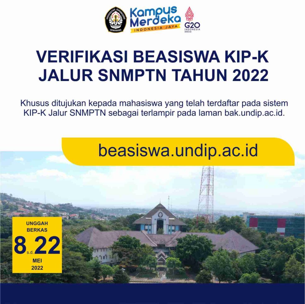 Bersama ini disampaikan bahwa bagi mahasiswa calon penerima beasiswa KIP-Kuliah Tahun 2022 jalur SNMPTN sebagaimana terlampir yang sudah dinyatakan lolos verifikasi sebagai mahasiswa baru diwajibkan untuk menyampaikan data dan berkas persyaratan melalui sistem beasiswa.undip.ac.id mulai 8 s.d. 22 Mei 2022. Data dan berkas persyaratan yang disampaikan akan dijadikan dasar kelolosan beasiswa dan harus dapat dipertanggungjawabkan kebenarannya. Surat […]