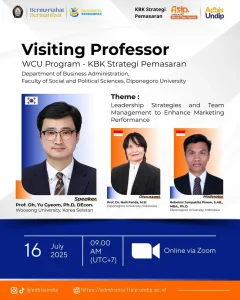Semarang, 28 Agustus 2025 – Fakultas Ilmu Sosial dan Ilmu Politik Universitas Diponegoro (FISIP UNDIP) kembali menghadirkan kegiatan akademik berskala internasional melalui penyelenggaraan International Guest Lecturer. Acara ini menghadirkan narasumber tamu dari Italia, Prof. Lorenzo Cicatiello, seorang pakar di bidang Public Finance dan Multilevel Governance dari Department of Human and