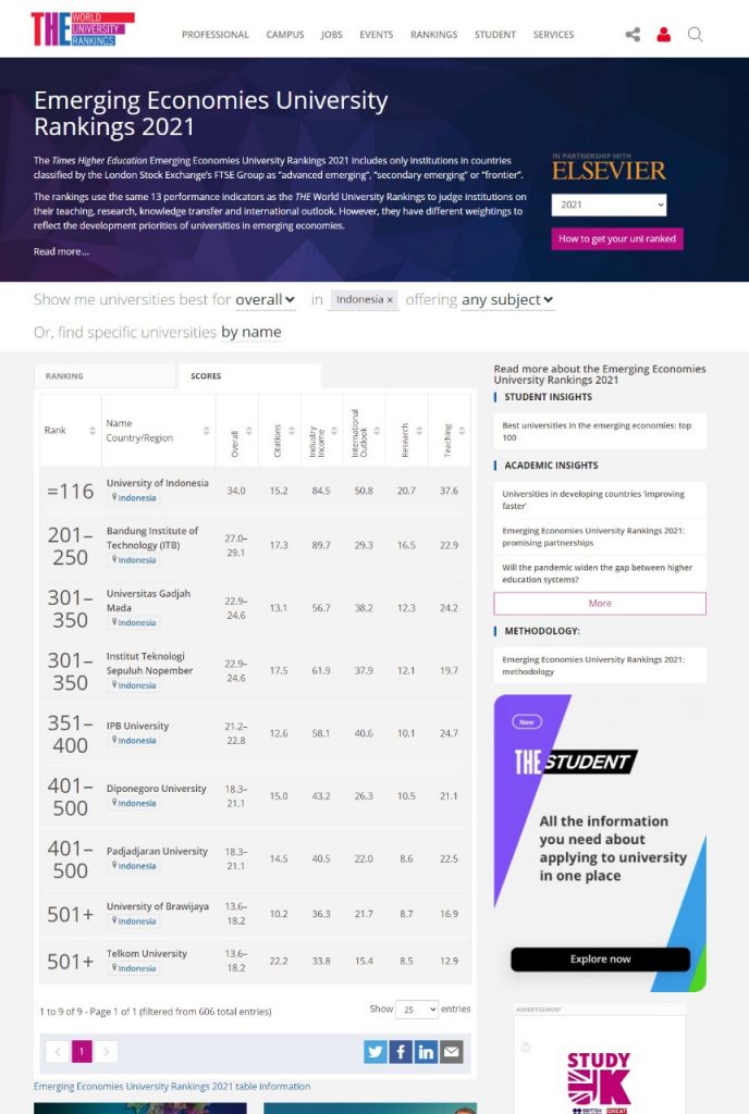 THE WUR Emerging Economies University Rankings 2021: UNDIP Posisi 6 di Indonesia