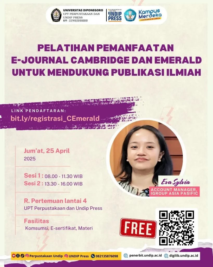 UPT Perpustakaan Universitas Diponegoro kembali menggelar kegiatan peningkatan kapasitas akademik bagi sivitas akademika melalui Pelatihan Pemanfaatan E-Journal Cambridge dan Emerald. Pelatihan ini ditujukan untuk mendukung penguatan publikasi ilmiah, khususnya bagi dosen, peneliti, dan mahasiswa pascasarjana. Acara yang terbuka untuk umum ini menghadirkan narasumber Efa Silvia, yang akan memandu peserta dalam memahami strategi pencarian dan pemanfaatan […]