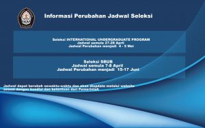 Kami informasikan kembali bahwa ujian seleksi SBUB dan UM IUP akan diundur sesuai jadwal berikut ini : Jalur Jadwal Semula Jadwal Perubahan SBUB 7 – 8 April 15 – 17 Juni UM IUP 27 – 28 April 4 – 5 Mei Peserta dapat melakukan cetak kartu / cetak pengumuman