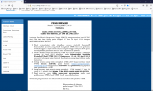 Rektor Universitas Diponegoro dengan ini mengumumkan registrasi administratif dan verifikasi-registrasi bagi calon mahasiswa baru yang dinyatakan lolos Program Doktor, Magister Dan Profesi Semester Gasal Gelombang 1 Universitas Diponegoro Tahun Akademik 2019/ 2020, diwajibkan melaksanakan rangkaian kegiatan sebagai berikut : Membayar biaya pendidikan pada tanggal 29 April s.d. 7 Mei 2019.