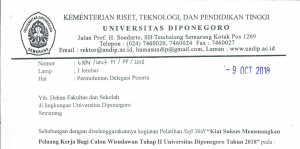 Berikut ini Kami informasikan jadwal pelaksanaan Upacara Wisuda ke-152 Universitas Diponegoro Periode OKTOBER/NOVEMBER Tahun 2018, bahwa Upacara Wisuda akan dilaksanakan pada tanggal 30 OKTOBER 2018 – 02 NOVEMBER 2018 bertempat di Gdg. Prof. Soedarto, S.H., Undip – Tembalang, Semarang. Adapun jumlah lulusan yang akan diwisuda pada periode wisuda kali ini