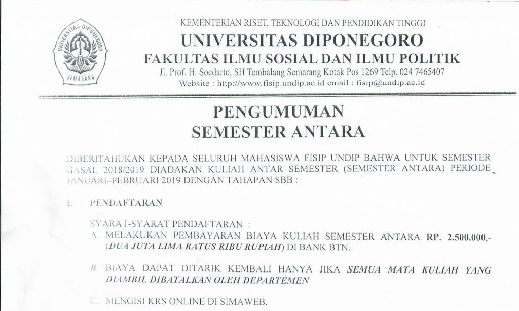 Ralat Jadwal Registrasi Administratif Mahasiswa Lama Undip Semester Genap Tahun Akademik 2018/2019