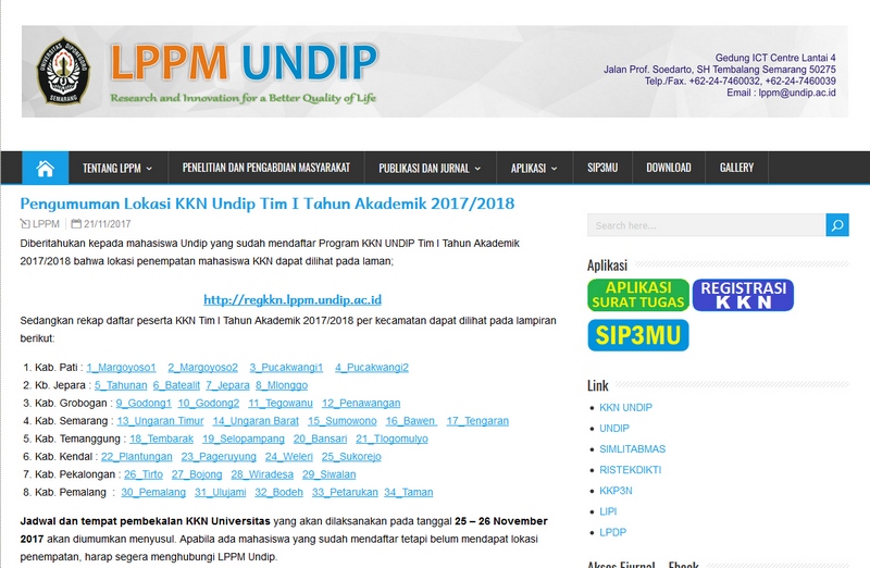 Pengumuman Lokasi KKN Undip Tim I Tahun Akademik 2017/2018