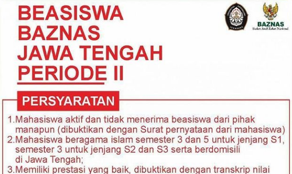 - The candidate who has passed all requirements will receive a complete BAZNAS JATENG 2020 scholarship according to his/her level of study: