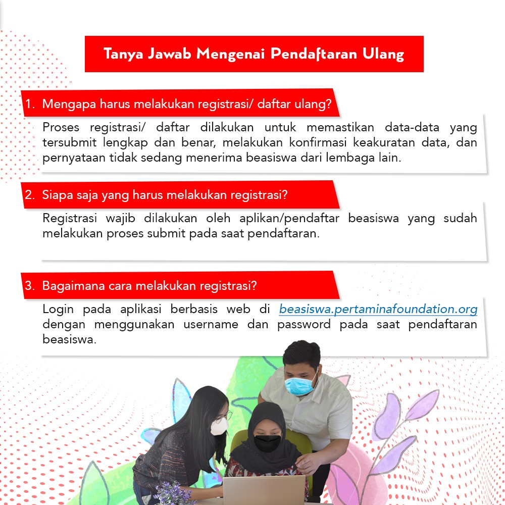Following up the direction by the Pertamina Foundation, it is notified to students who had registered for the Pertamina Foundation Scholarship to check and confirm the completeness of the submitted data through the re-registration stage with the following conditions: