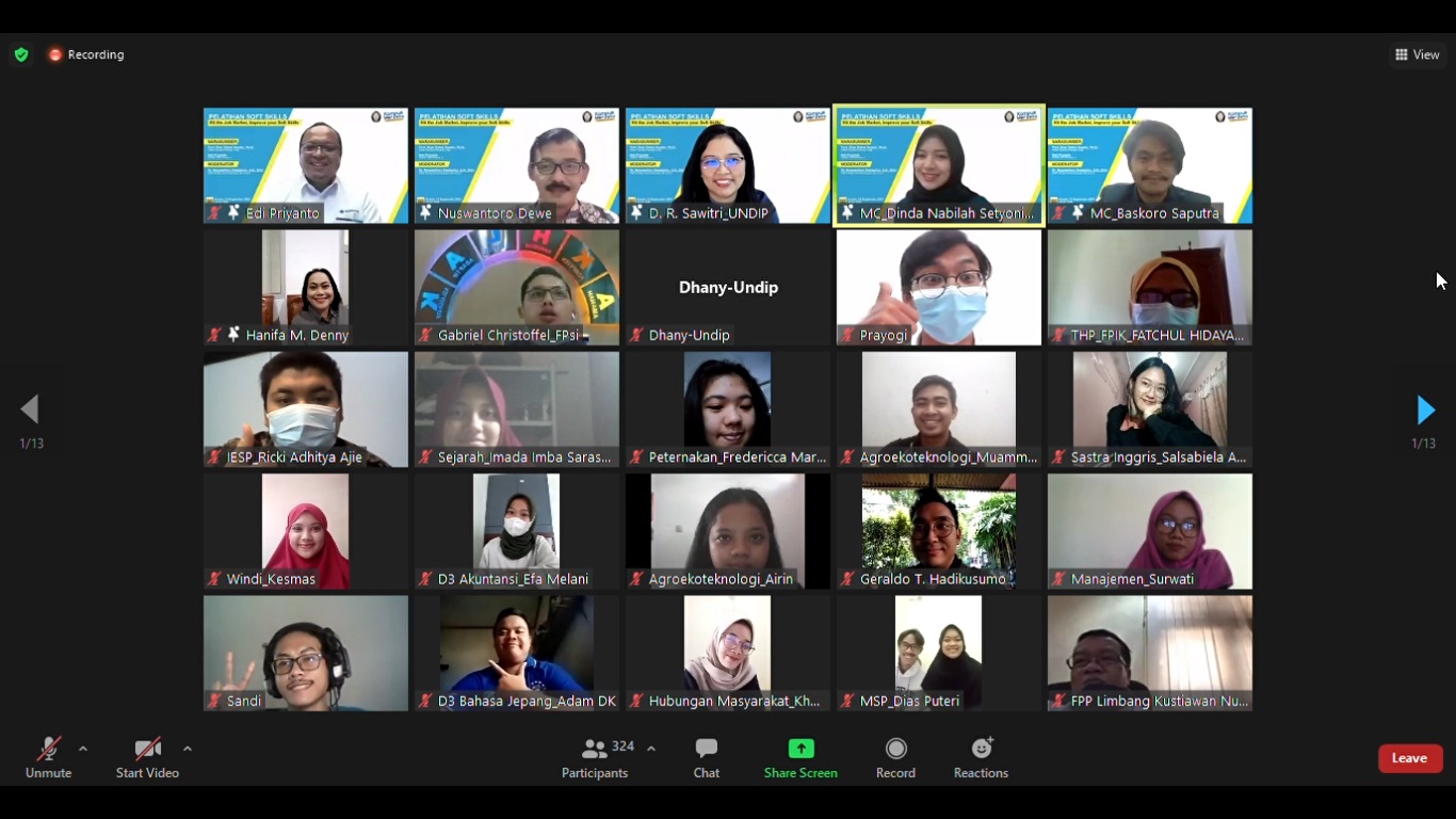 To equip the prospective graduates to be able to compete with other universities’ graduates, Universitas Diponegoro had held a Soft Skills training Webinar on Thursday (16/09) at 09.00 GMT+7 through the Zoom meeting platform.