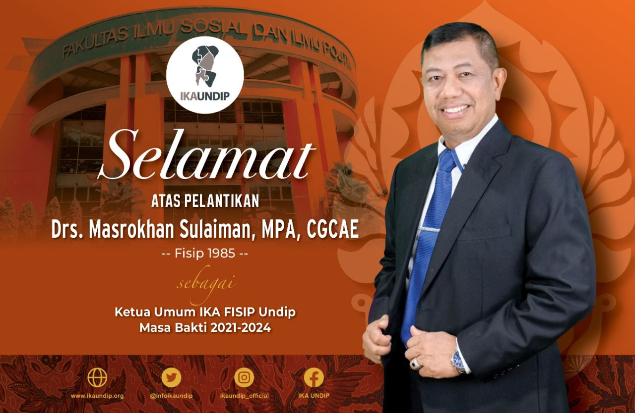 Based on the decree, it was determined that Drs. Masrokhan Sulaiman, MPA, CGCAE as the General Chairman of IKA FISIP Undip for the 2021-2024 period. In front of all the invited guests, both offline and online, the Chairman of the Universitas Diponegoro Alumni Association, Akhmad Muqowam, who was often called AMQ, inaugurated the IKA FISIP Undip Management for the 2021-2024 period.