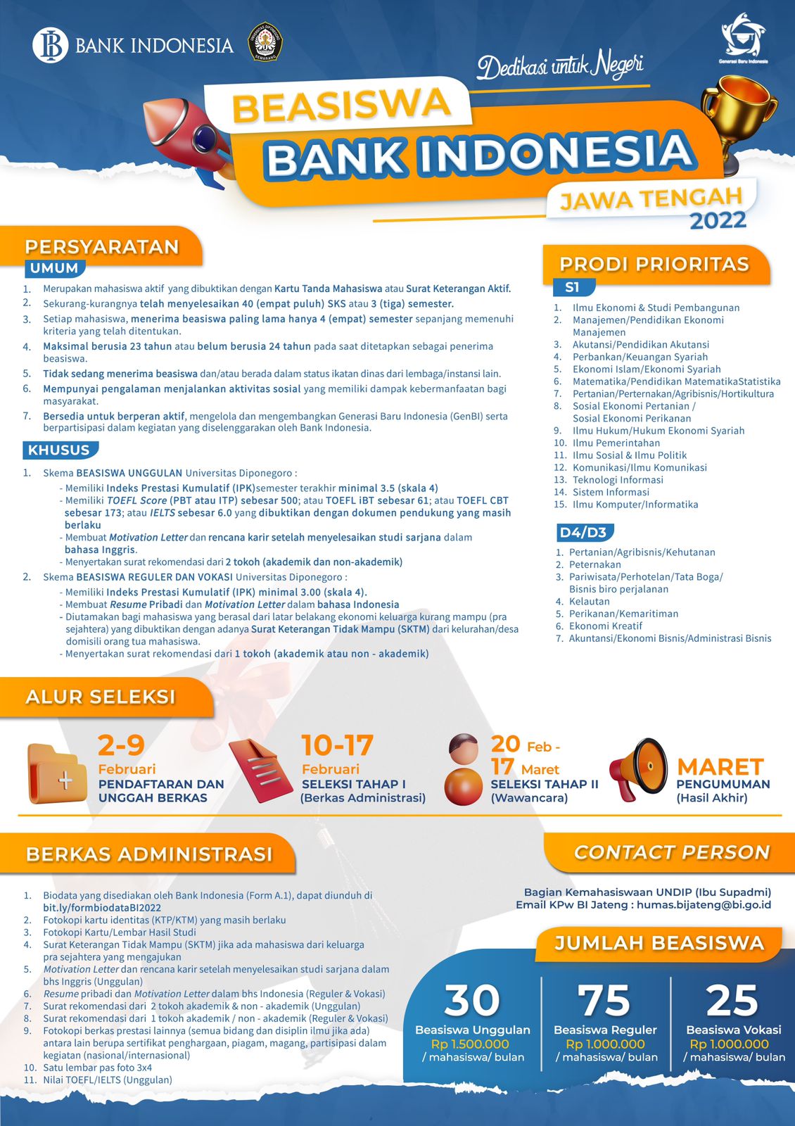 Bank Indonesia Scholarship – Central Java 2022 : Registration Deadline February 9, 2022