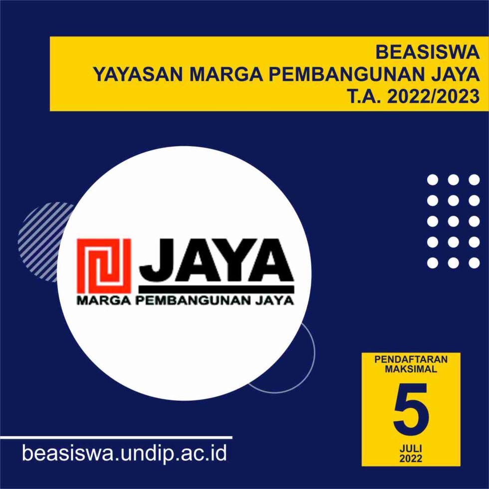 We hereby announce that the Marga Pembangunan Jaya Foundation (YMPJ) for the academic year 2022/2023 will provide scholarships to students at Universitas Diponegoro. The requirements and completeness of the documents to get the scholarship are as follows: Active students (not on academic leave) in semester 5; Students who are actively studying in semester 7 who […]