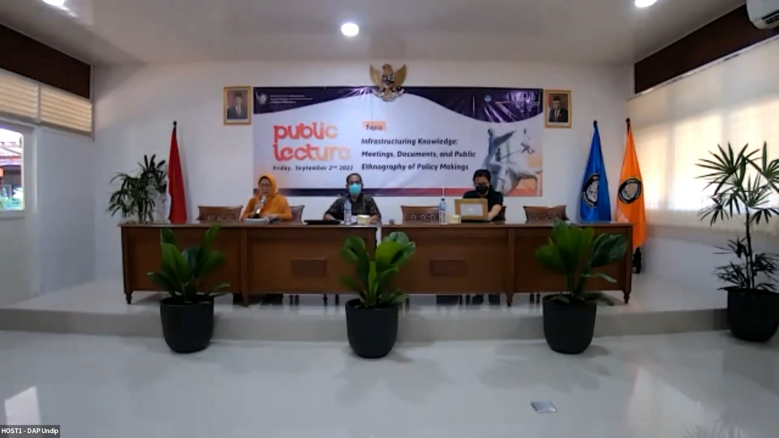 Semarang (2/9) – Guest Lecturer of Public Administration, Faculty of Social Science and Political Science, Universitas Diponegoro brought the theme “Insfrastructuring Knowledge: Meetings, Documents, and Public Ethnography of Policy Makings”. This lecture was held hybrid in the Meeting Room of the Undip FISIP Postgraduate Program and online via the Zoom application. It presented a researcher from Humboldt University, Berlin-Germany, Dr des Indrawan Prabaharyaka, M.Phil. This activity was moderated by Dr. Budi Puspo Priyadi, M.Hum and started at 13.30 GMT+7.