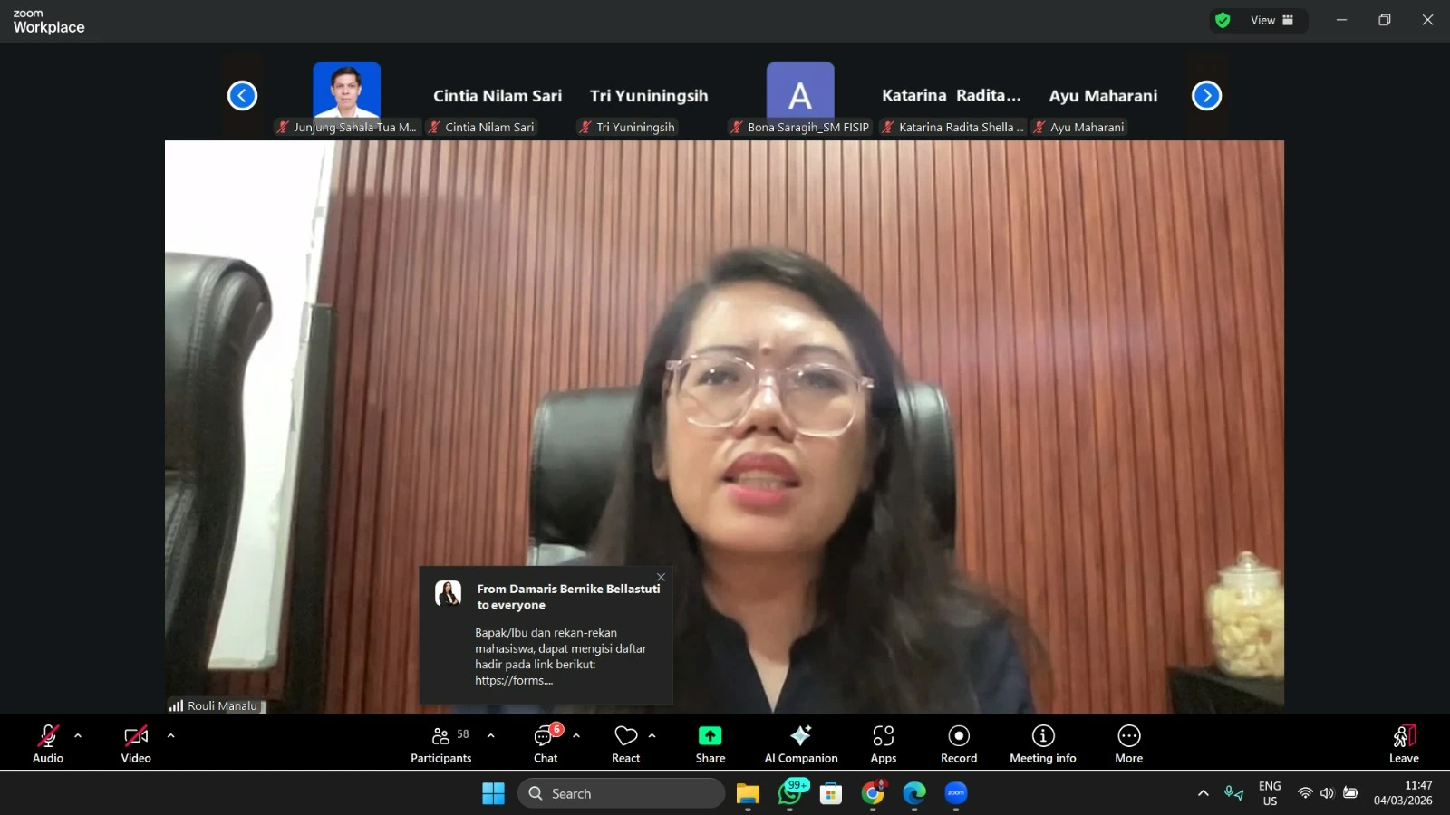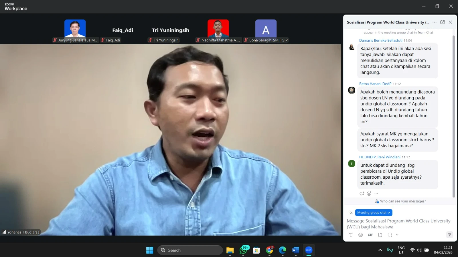 SEMARANG, March 4, 2026 – In a strategic move toward global excellence, the Faculty of Social and Political Sciences (FISIP) at Universitas Diponegoro held an online socialization event for the World Class University (WCU) programs. The event was officially opened by the Vice Dean of Academic and Student Affairs of FISIP Undip, who emphasized the vital role of student involvement in the international arena.
