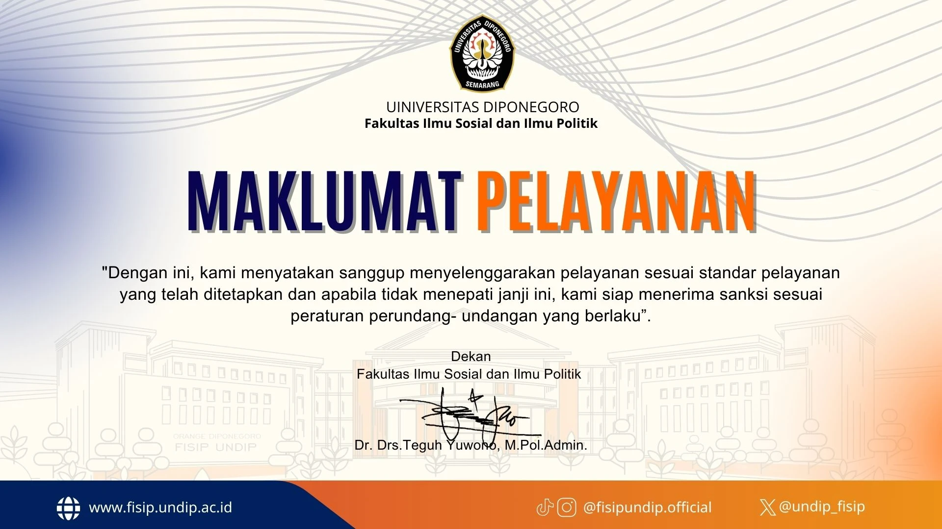 In an official statement signed by the Dean, Dr. Drs. Teguh Yuwono, M.Pol.Admin., FISIP Undip declared its readiness to organize services in accordance with established standards.