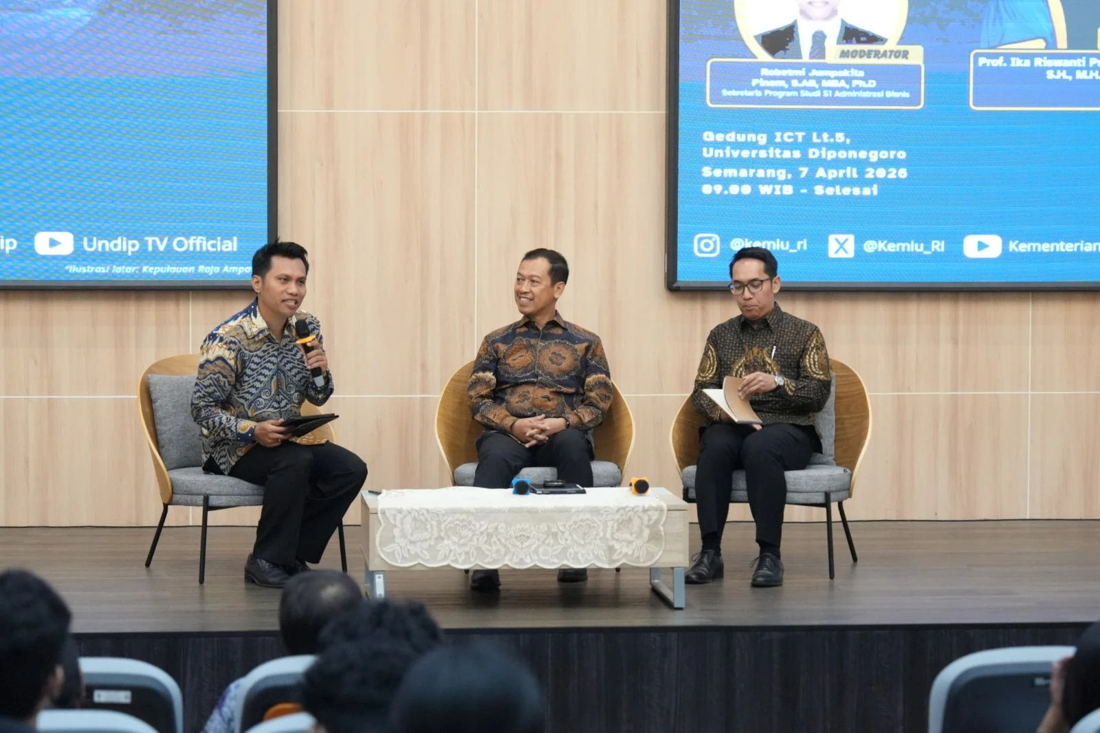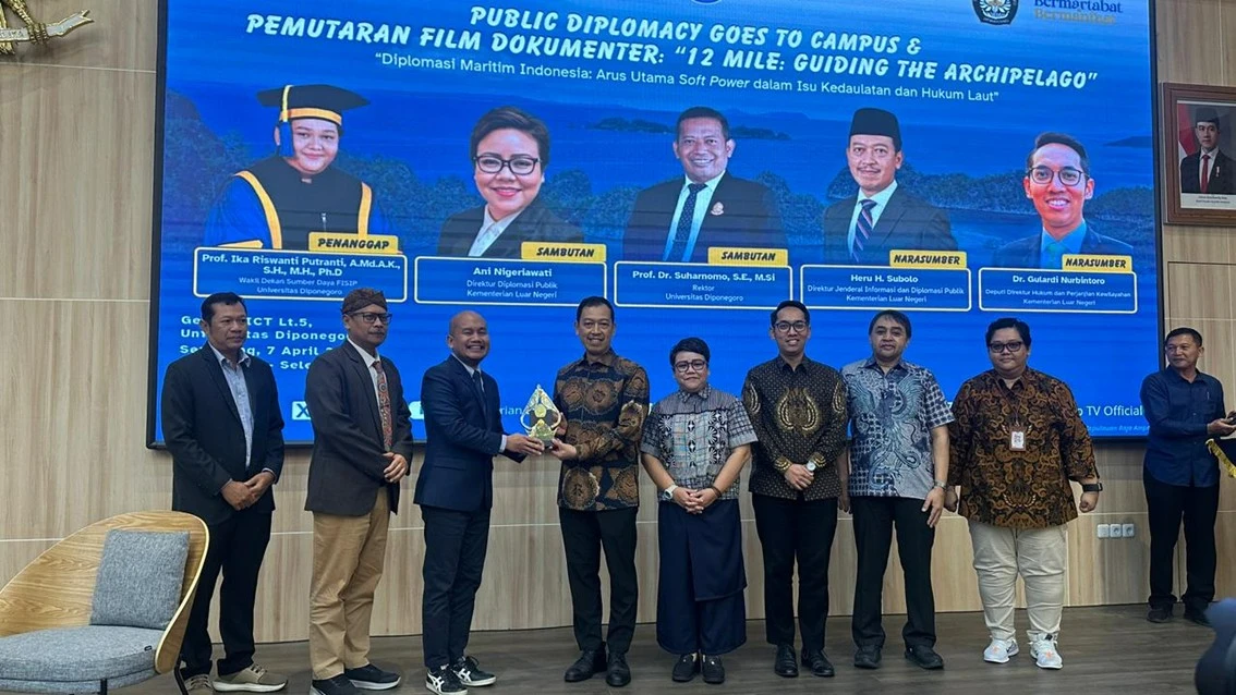 Semarang (04/07) – The leaders of the Faculty of Social and Political Sciences at Universitas Diponegoro (FISIP UNDIP), led by Dean Teguh Yuwono, attended the “Public Diplomacy Goes to Campus” event, featuring a screening of the documentary “12 Mile: Guiding the Archipelago”, on Tuesday, April 7, 2026, at the ICT Building of Universitas Diponegoro.