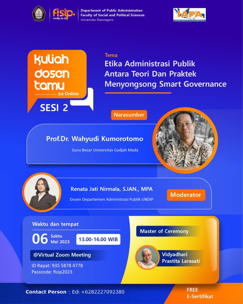 In order to support academic activities, the Faculty of Social and Political Sciences, Universitas Diponegoro (FISIP UNDIP) will hold a Guest Lecturer on quantitative research methods in the applications of public administration studies. This Guest Lecturer is expected to be an academic tool for the academic community of FISIP UNDIP in an effort to develop […]